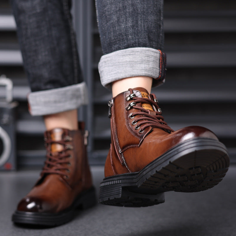 Men's High-top British Platform Work Shoes Leather Boots Retro Cycling Boots