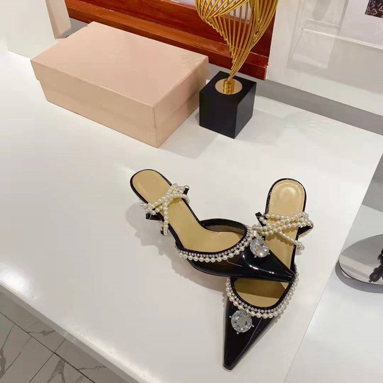 Pointed Toe Toe Stiletto Heel Pearl One Word Belt Fashion Women's Sandals Pointed Toe Toe Stiletto Heel Pearl One Word Belt Fashion Women's Sandals