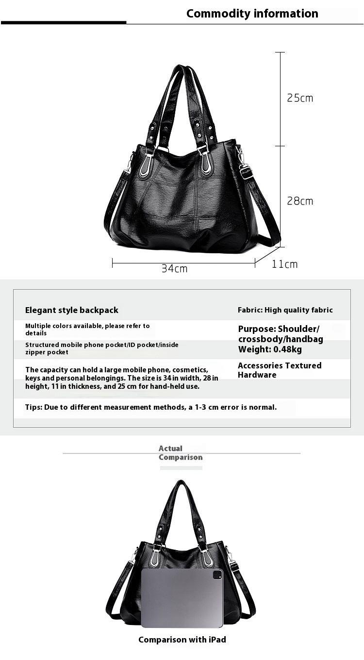 Urban Simple Fashion Large Capacity Handbag Women's Shoulder Crossbody Bag