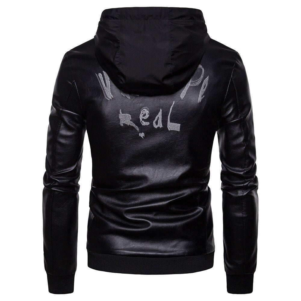 Men's British fashion hooded leather coat  Leather Jacket 70.96 Black-XXL
